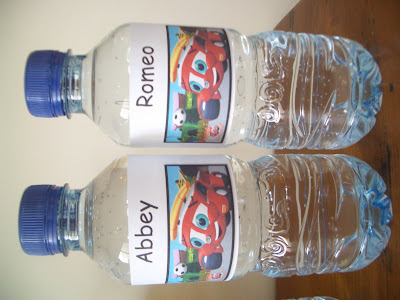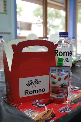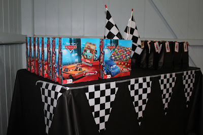 This is a picture of the loot bags and party gifts that the children received from the boys as a thank you for coming to their party. The loot bags had some cars lollies and two packets of Wikki Stix inside, and each child received a Cars themed board game. The loot bags were just a simple black bag that I attached the tag off the lanyards to with some Cards Themed ribbon from Spotlight.